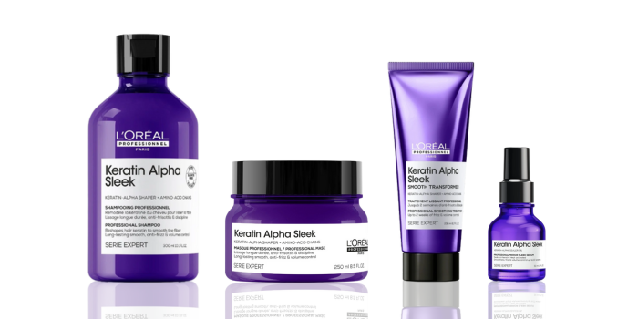 La gamme Keratin Alpha Sleek de L’Oréal Professionnel apporte une solution professionnelle innovante pour contrôler les frisottis et sublimer la fibre capillaire. Destinée aux salons de coiffure, aux coiffeurs indépendants, aux écoles de coiffure et aux grossistes, cette gamme permet de proposer un service semi-permanent anti-frisottis, combinant efficacité et respect de la santé du cheveu. Adaptée à tous les types de cheveux, elle assure une douceur immédiate, une brillance intense et une réduction significative du volume, tout en réduisant par deux le temps de coiffage.