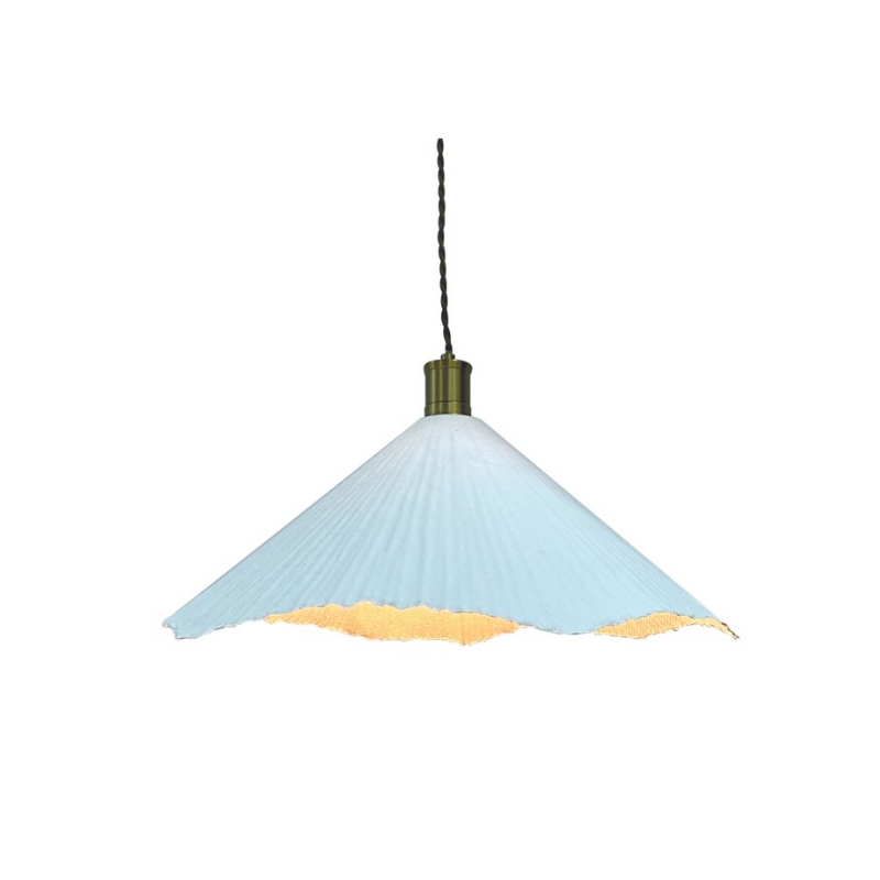 L’abat-jour Louise cône par Opjet se distingue par sa forme organique et artisanale. Confectionné en papier mâché, il séduit par ses bords irréguliers et son aspect brut. Une création parfaite pour une ambiance douce en salon.